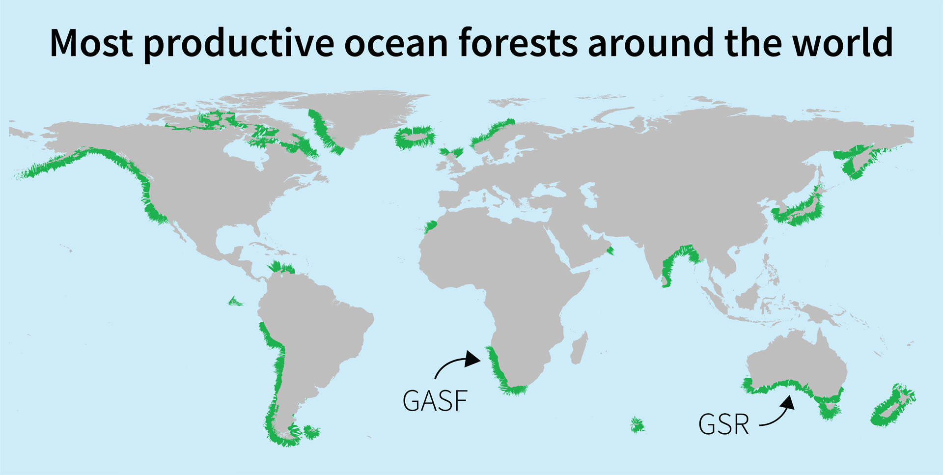 تنها تعداد کمی از پرحاصلترین جنگلهای اقیانوسی دنیا نظیر جنگل دریایی بزرگ آفریقا و تپههای دریایی بزرگ جنوبیِ استرالیا شناسایی و نامگذاری شدهاند