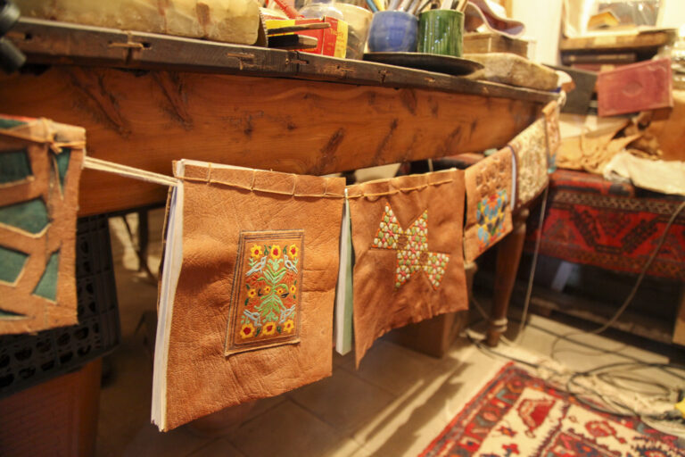 همانگونه که گفته شد چرمی که برای صحافی در این کارگاه استفاده میشود، قبلاً حدود 80 سال قبل دباغی شده، اما با این وجود چرم کاملاً نرم و خوب باقی مانده است.