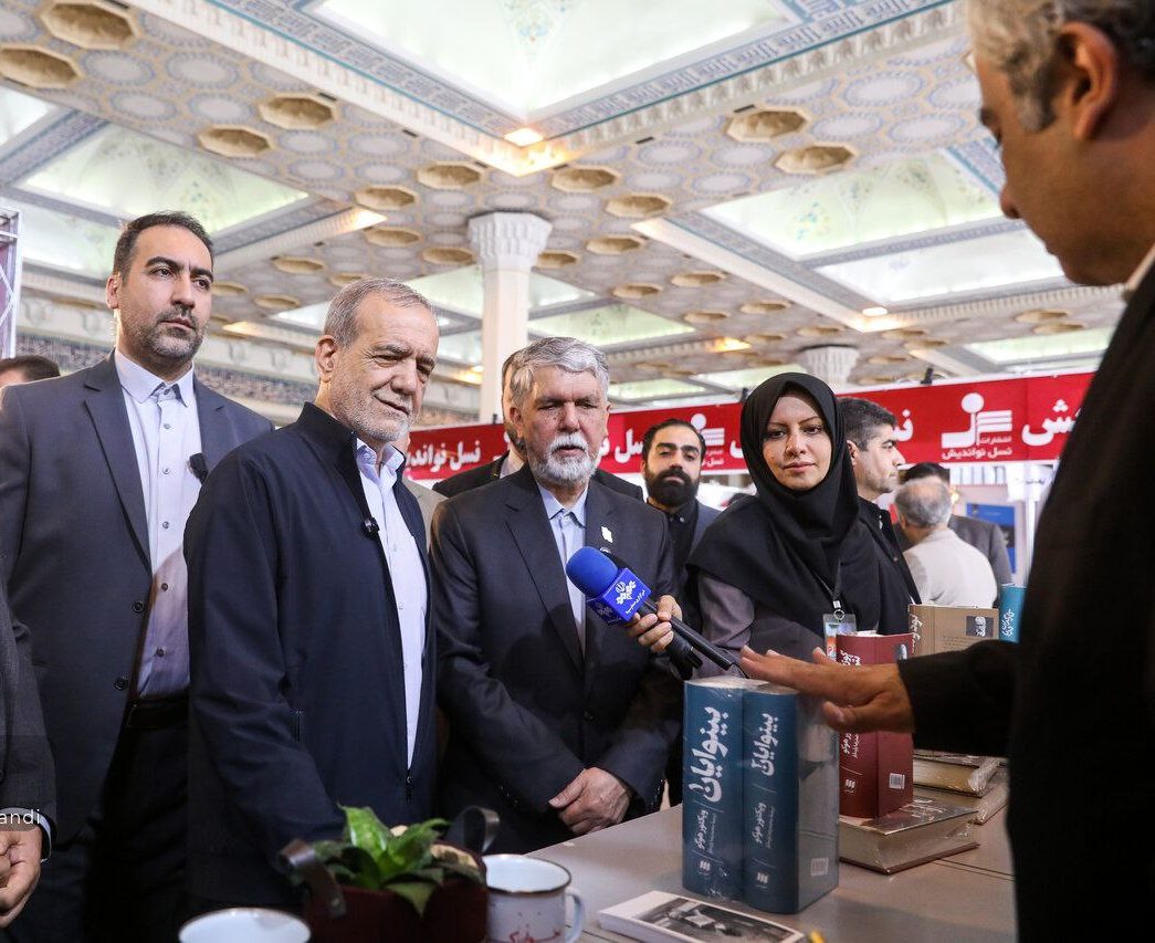مسعود پزشکیان جمعه (۲۶ اردیبهشتماه) با حضور در مصلی امام خمینی (ره)، محل برگزاری سیوششمین دوره نمایشگاه بینالمللی کتاب تهران، از بزرگترین رویداد فرهنگی کشور، بازدید کرد.