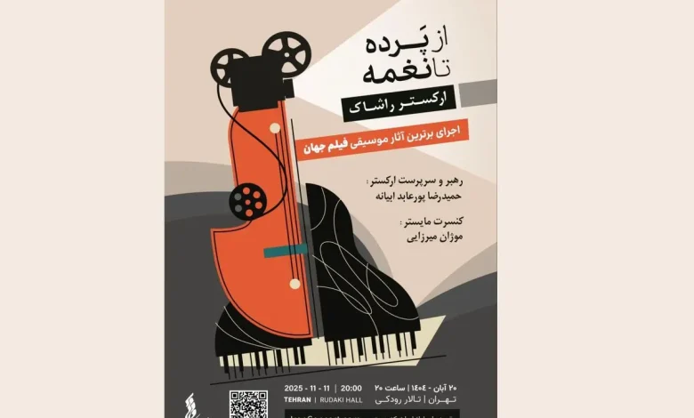 کنسرت ارکستر موسیقی فیلم راشاک از ساعت ۲۰ شامگاه سهشنبه ۲۰ آبان در تالار رودکی برگزار میشود و علاقهمندان می توانند بلیت این برنامه را از سایت ایران کنسرت تهیه کنند.