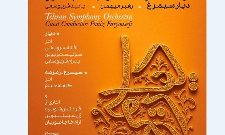 کنسرت ارکستر سمفونیک تهران با عنوان “دیارِ سیمرغ” با رهبری میهمان پانیذ فریوسفی ۲۱ و ۲۲ آبان، ساعت ۲۱:۳۰ در تالار وحدت برگزار میشود و علاقمندان میتوانند جهت تهیه بلیت این برنامه به سایت هنرتیکت مراجعه نمایند.